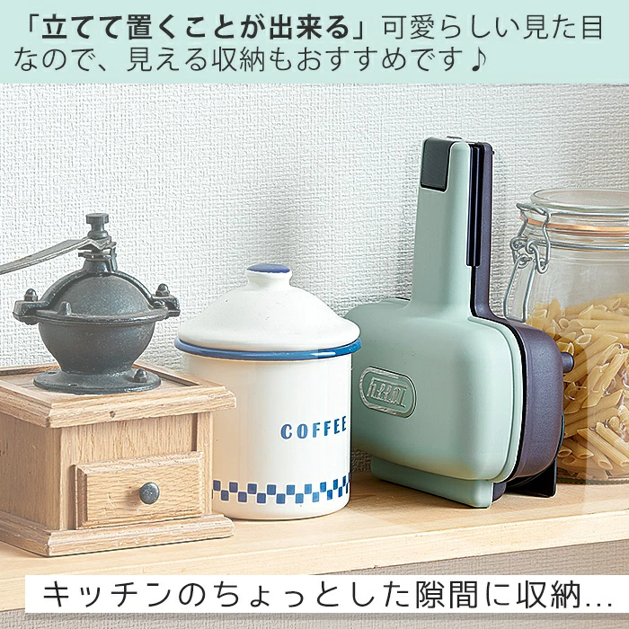 本体は非常にコンパクトでスリムな設計。使用後は立てて収納できるので、キッチンの隅にスッとしまえて邪魔になりません。特に収納スペースが限られた一人暮らしのキッチンにもぴったりのサイズ感です。